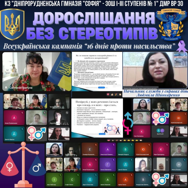 ДОРОСЛІШАННЯ БЕЗ СТЕРЕОТИПІВУ рамках Всеукраїнської кампанії «16 днів проти насильства» у КЗ «Дніпрорудненська гімназія “Софія”» відбулася важлива та змістовна онлайн-зустріч для старшокласників. Захід розпочала директорка гімназії Світлана Притула, яка привітала всіх учасників і наголосила: дорослішання — це не лише про вік, а й про відповідальність за…