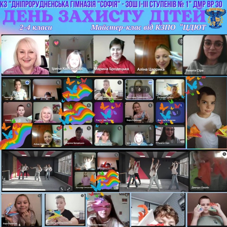 День захисту дітей у КЗ "Дніпрорудненська гімназія "Софія" - ЗОШ І-ІІІ ступенів № 1" ДМР ВР ЗО Сьогодні у нашій гімназії відбувся яскравий і надзвичайно теплий онлайн-захід за участі КЗПО «ЦДЮТ», присвячений Дню захисту дітей. Учні 2–4 класів разом із Людмилою Іванівною Фоменко взяли участь у цікавому майстер-класі. Діти власноруч створили чудові паперові іграшки — яскраві,…