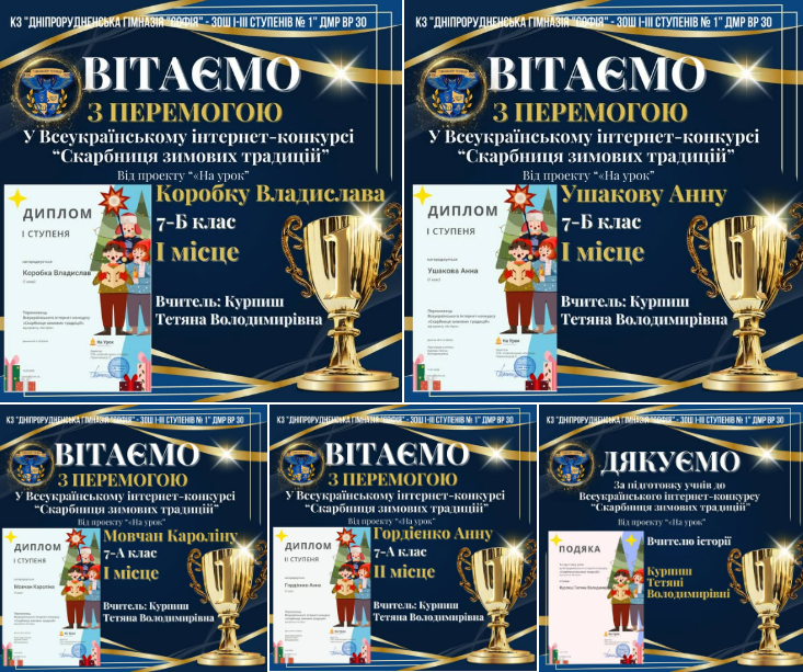 Вітаємо з чудовими досягненнями! 12 січня завершився Всеукраїнський інтернет-конкурс «Скарбниця зимових традицій» освітнього проєкту НаУрок, присвячений традиційним зимовим святам, які здавна мають особливе значення для українців Під час конкурсу наші учні перевірили свої знання про традиції святкування Дня Святого Миколая, Різдва, Нового року, Водохреща та інших зимових свят, а також…