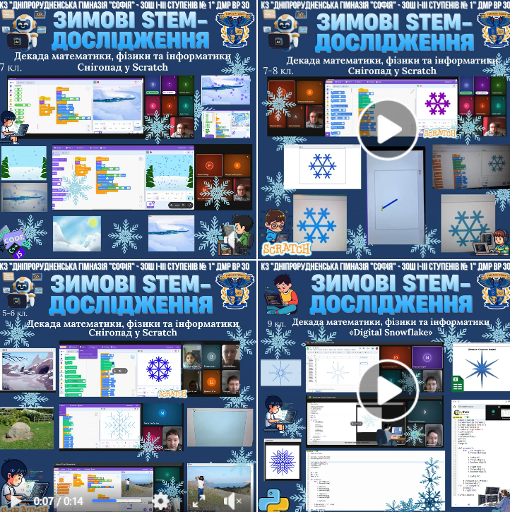 Digital Snowflake: коли зима зустрічається з технологіями У рамках декади математики, фізики та інформатики уКЗ «Дніпрорудненська гімназія “Софія” — ЗОШ І–ІІІ ступенів № 1» ДМР ВР ЗО на уроках інформатики панувала справжня зимова атмосфера. Учні під керівництвом учителів Владислава АМІРЗЯНОВА та Віталія ЛОБАСА:створювали справжній снігопад у середовищі…