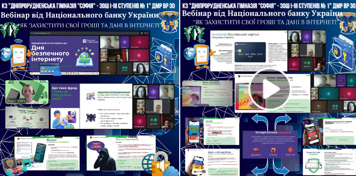 Як не потрапити на гачок шахраїв та зберегти свої гроші й персональні дані в інтернеті? Відповіді на ці запитання отримали учні 7-А, 7-Б, 8-А, 9-Б, 10-А класів разом із педагогами КЗ «Дніпрорудненська гімназія “Софія” — ЗОШ І–ІІІ ступенів № 1» ДМР ВР ЗО, долучившись до актуального вебінару від Національного банку України до Дня безпечного інтернету «Разом…