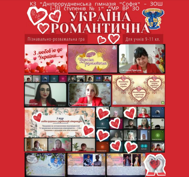 У нашому закладі освіти відбулася пізнавально-розважальна гра для учнів 9–11 класів «Україна романтична». Старшокласники змагалися у трьох турах: «Романтична географія України» «Романтичні сюжети української історії» «Мелодія кохання в українській літературі» Команди демонстрували ерудицію, кмітливість, вміння працювати разом та щире…