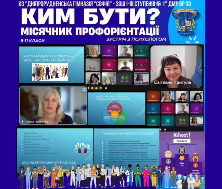 У межах місячника профорієнтації в нашому закладі освіти відбулася тематична зустріч учнів 9–11 класів із психологом Оксаною Голобоковою. Під час зустрічі учасники говорили про важливість усвідомленого вибору професійного шляху, про те, як поєднати власні інтереси, здібності та можливості, а також обговорили найпоширеніші помилки, яких варто уникати під час вибору майбутньої професії. Учні…