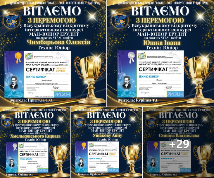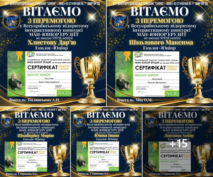 Наші учні — серед переможців конкурсу «МАН-Юніор Ерудит»! Учні нашого закладу освіти взяли участь у Всеукраїнському відкритому інтерактивному конкурсі «МАН-Юніор Ерудит» на засадах STEM-освіти. Учасники продемонстрували свої знання, ерудицію та зацікавлення наукою у номінаціях «Еколог» та «Історик». Завдяки наполегливості, старанній підготовці…
