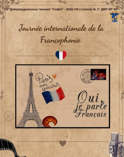 У КЗ «Дніпрорудненська гімназія “Софія” – ЗОШ І–ІІІ ступенів №1» ДМР ВР ЗО до цього свята підготували особливий відеопроєкт, який об’єднав шкільну спільноту, закохану у французьку мову.Французька — це більше, ніж мова. Це мова краси, культури, натхнення і, безумовно, мова кохання. Міжнародний день франкофонії та День французької мови в ООН…