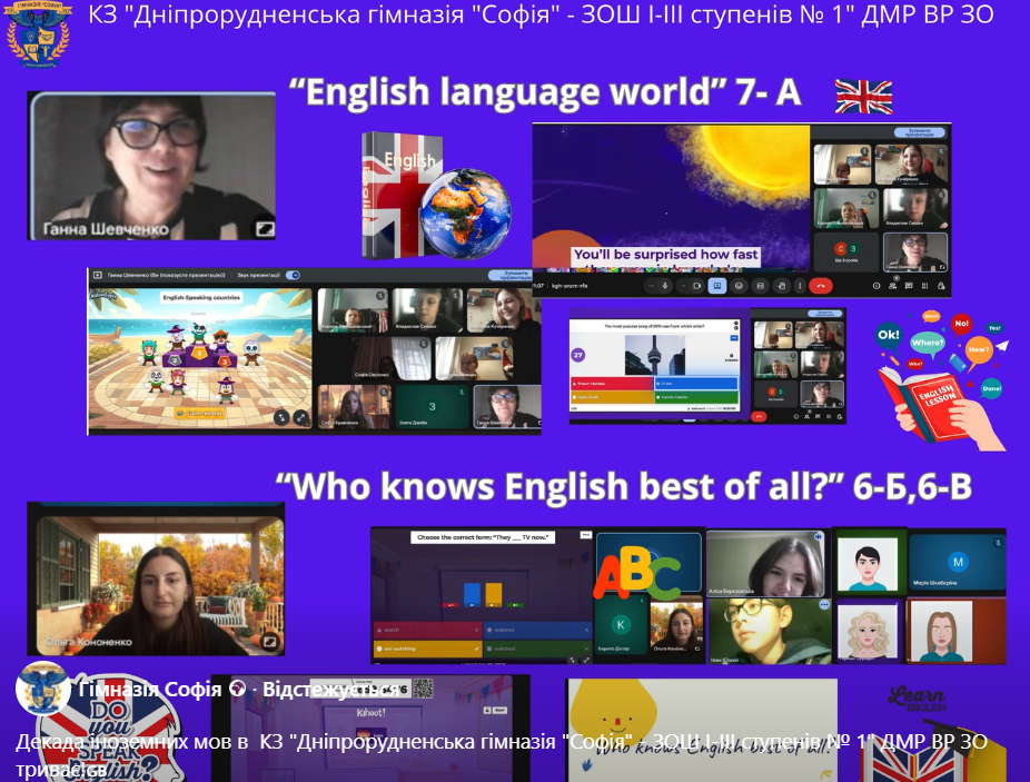 Декада іноземних мов в КЗ "Дніпрорудненська гімназія "Софія" - ЗОШ І-ІІІ ступенів № 1" ДМР ВР ЗО триває! Вчителі англійської мови Ганна Шевченко та Ольга Кононенко провели для учнів захопливий конкурс «Kahoot!» Діти з ентузіазмом відповідали на запитання, змагалися за першість і, найголовніше, — весело та цікаво вдосконалювали свої знання англійської мови. Такі інтерактивні ігри…