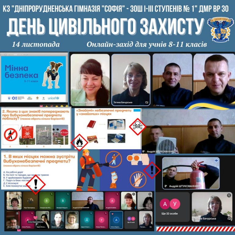 Сьогодні у нашому закладі пройшов День цивільного захисту – подія, що нагадує кожному з нас про важливість готовності діяти у надзвичайних ситуаціях. Представники ГУ ДСНС в Запорізькій області провели змістовний онлайн-урок, під час якого розглянули ключові теми: Мінна безпека – як розпізнати вибухонебезпечні предмети та правильно діяти при їх виявленні. Пожежна безпека – основні…