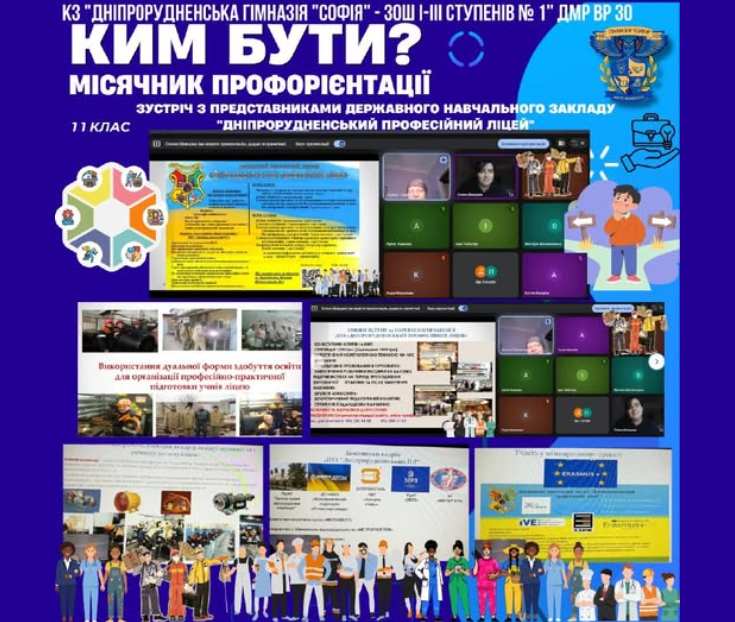 Обираємо майбутнє вже сьогодні! В рамках місячника профорієнтації для учнів 11 класів Комунального закладу «Дніпрорудненська гімназія “Софія”» відбулася онлайн-зустріч із представниками Державного навчального закладу «Дніпрорудненський професійний ліцей», яку провела викладач хімії Шевцова О.А. Під час заходу учні ознайомилися з переліком професій, за якими…